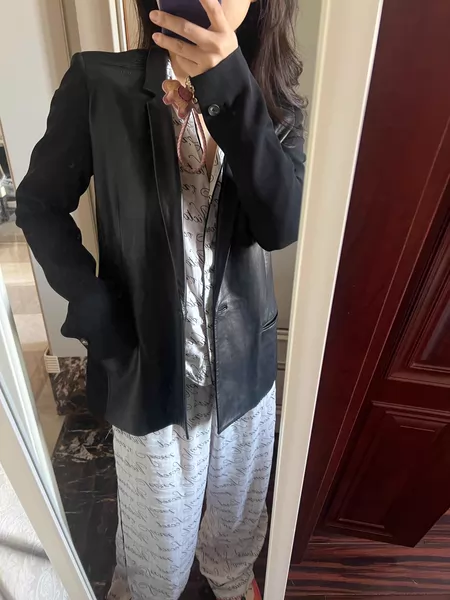 Helmut Lang黑色羊皮西装外套,2码,100%羊皮, 经典黑色,版型挺阔,质感好。春秋季节穿很合适。2020年i 专柜购买 ¥ 420 ¥4500 m***7 卖家信用极好
