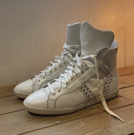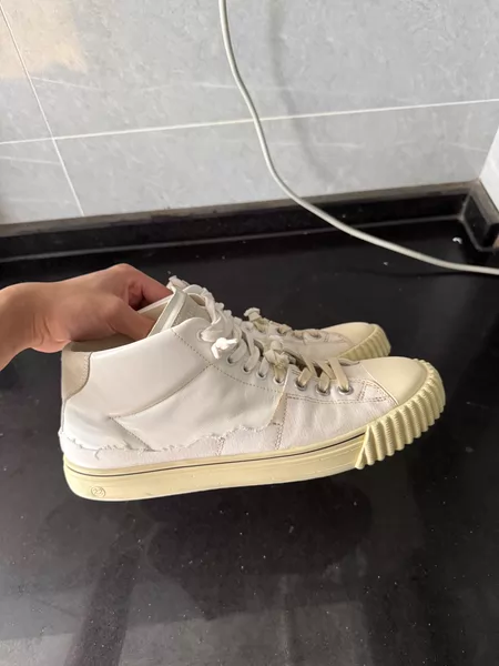 Maison Margiela 马吉拉高帮饼干鞋,意大利产, 白色拼皮,43码。成色还可以,穿过几次,鞋底有正常磨损,鞋 一周内发布 ¥ 1099 10人想要 j***n 卖家信用极好