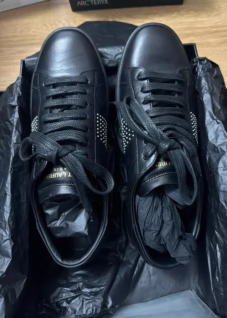 出SAINT LAURENT黑色运动板鞋 37码 全新鞋带 穿过很少有一个全新鞋带 铆钉设计 皮质 带原盒 可邮寄 状态 ¥ 900 ¥2500 花***蟹 卖家信用极好