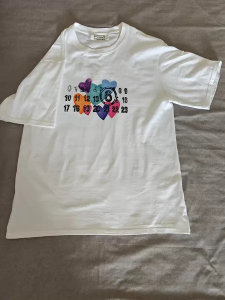 几乎全新Maison Margiela马吉拉数字爱心印花白色 短袖T恤,胸围52cm,衣长72.5cm,肩宽48cm,S码,意大利制造,高克重纯棉面料,男女都能穿,保存很好,包邮,同城可自提。喜欢直接拍,细节私聊~二手物品不退换 4天内降价 ¥ 33 .67 云南 百分百好评