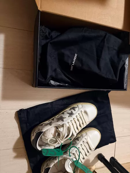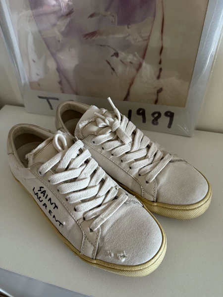 正品saint laurent slp 白色做旧SL/01低 帮板鞋 成色:5新(如图所示) 尺码:42.5码(42- YSL/圣罗兰 明显穿着痕迹 运动鞋 ¥ 200 8人想要 s***t