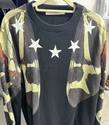 GIVENCHY/纪梵希 五星蝴蝶 圆领卫衣 黑色 状态:9.5/10 成色很好 无明显污渍 星星印花轻微开裂 码数:XS 版型偏大(胸围106cm,衣长73.5cm,手工测量存在1-3cm误差) Riccardo Tisci时期的经典作品 将星星元素与蝴蝶翅膀巧妙融合 购前须知:... XS 轻微穿着痕迹 Givenchy/纪梵希 ¥ 580 江苏 卖家信用极好