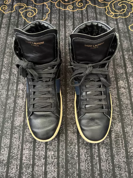正品Saint Laurent slp SL/02H男士高帮 运动鞋 圣罗兰高帮板鞋,41.5码,意大利制造,黑蓝拼色, ¥ 890 20人想要 s***d 卖家信用极好