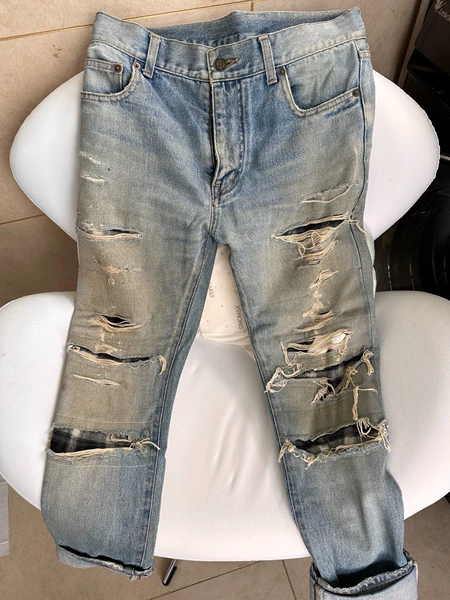 Saint Laurent PARIS 破洞牛仔裤 日本制造 27码 浅蓝色水洗 破洞设计 经典直筒版型 闲置出售 不退 专柜购买 ¥ 600 5人想要 l***n