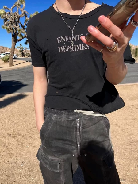 Enfants Riches Deprimes 忧郁的富二代 草写英文字母印花短袖 面料采用定织250G32支双股双纱纯棉 结构紧密耐磨性好 因为织物品质高 上身才能有硬挺的效果而非市面上普通棉布 面料软而无型。 外表所有肉眼可及的走线均是全身双线缝制,后领织带包边延伸到肩部加固,细节井口与肩膀处的衔... XL 全新 ¥ 55 ¥158 广东 卖家信用极好